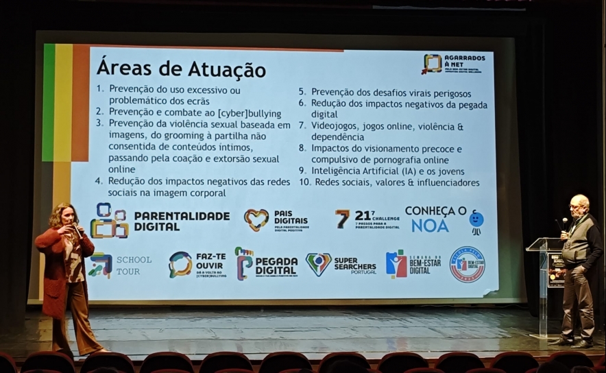 Entre os convidados estiveram representantes dos Agarrados à Net, da Associação Não Partilhes, da SAN – Clínica Integrativa, da ANDAEP, e do Conselho Nacional de Crianças e Jovens, que abordaram temas como segurança digital, literacia tecnológica, saúde emocional, uso da inteligência artificial e participação estudantil.