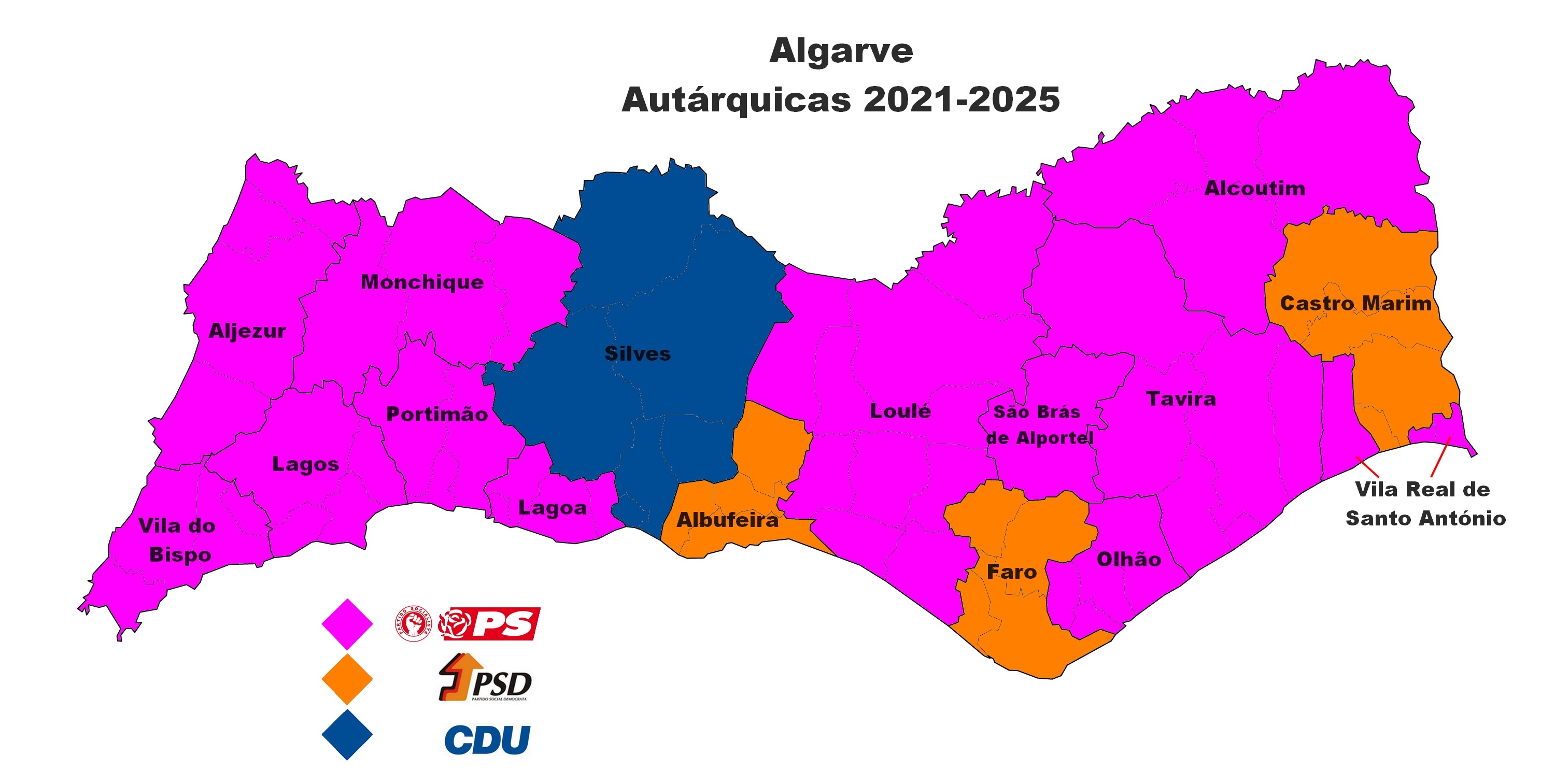 O PS mantém ainda as câmaras de Portimão, agora presidida por Álvaro Bila, e de Alcoutim, com Paulo Paulino — ambos novos autarcas que substituíram, durante o mandato 2021/2025, os presidentes então eleitos.