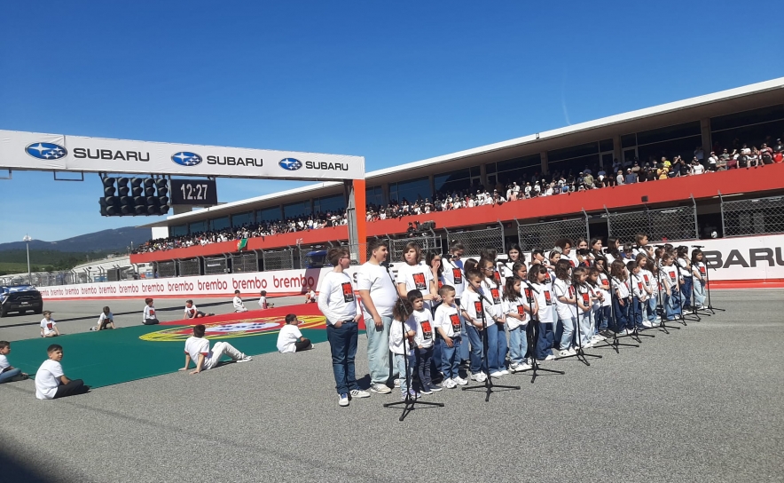 Acompanhadas à viola por Ricardo Silva e à guitarra portuguesa por Ricardo Martins, 44 crianças entoaram o Hino Nacional “A Portuguesa” perante milhares de pessoas que vieram assistir à prova.