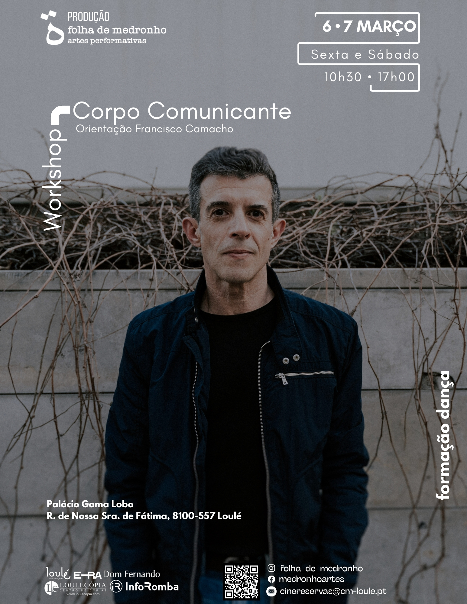 Neste workshop Francisco Camacho partilhará ferramentas e temáticas que atravessam o seu trabalho de coreógrafo e intérprete. Serão explorados pretextos de teatralidade, no sentido de corpos em situação, potenciando a comunicabilidade, a par do carácter abstracto do movimento. Estas metodologias de dança contemporânea serão experimentadas individual e coletivamente, numa atmosfera de abertura em que o contributo de cada pessoa é importante e valorizado.