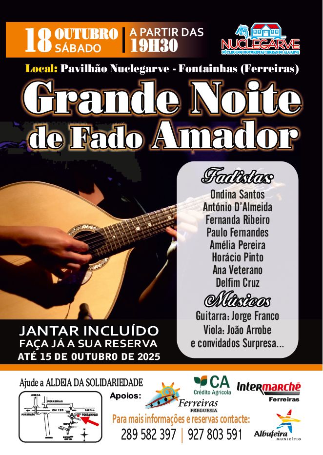 Contará com uma grande variedade de Fadistas e convidados surpresa, para animar ao longo de toda a Noite. Faça já a sua reserva até ao dia 13/10/25.