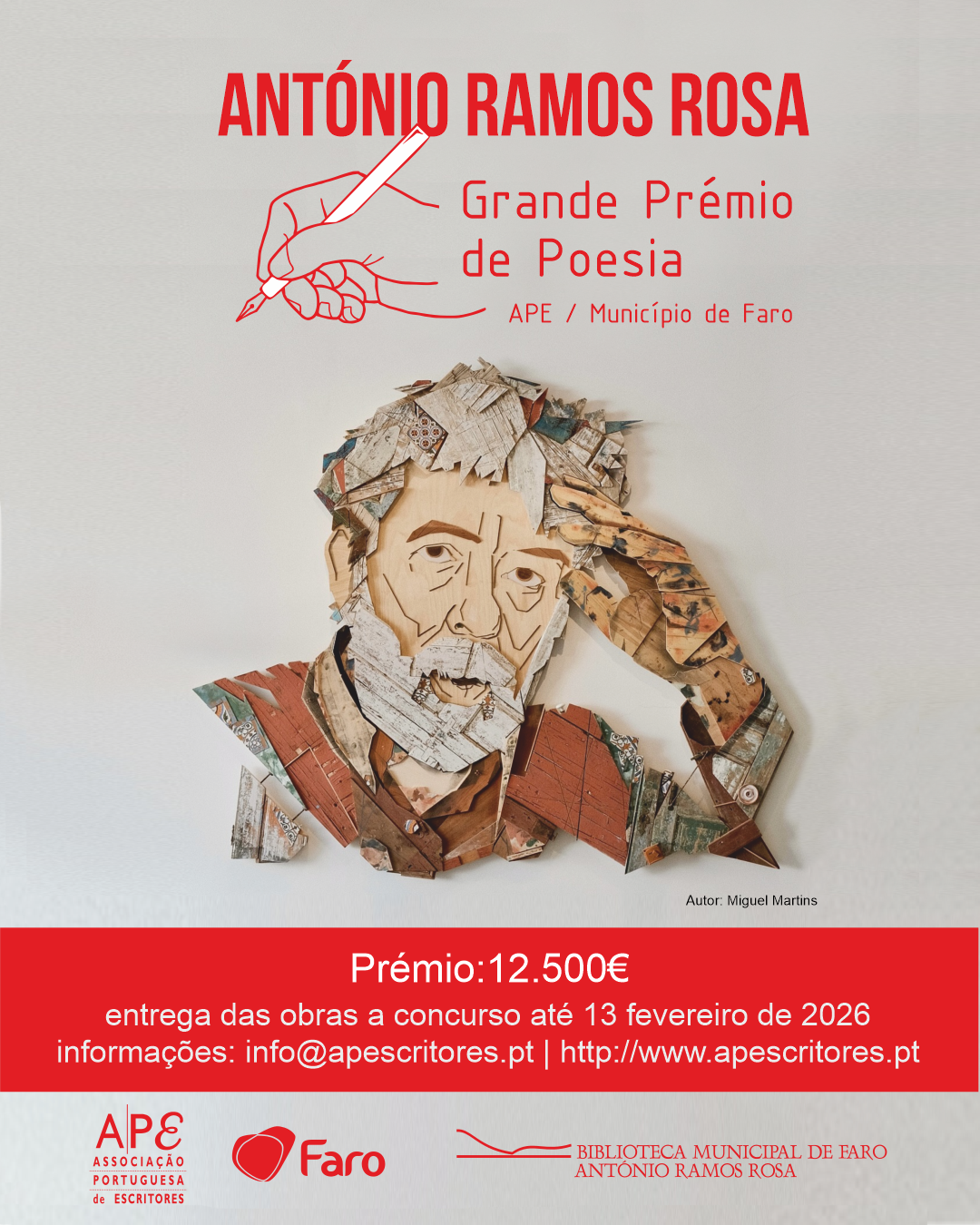 A Associação Portuguesa de Escritores (APE) lançou o período de candidaturas ao Grande Prémio de Poesia António Ramos Rosa – APE | Município de Faro, cujo prazo termina no próximo dia 13 de fevereiro.