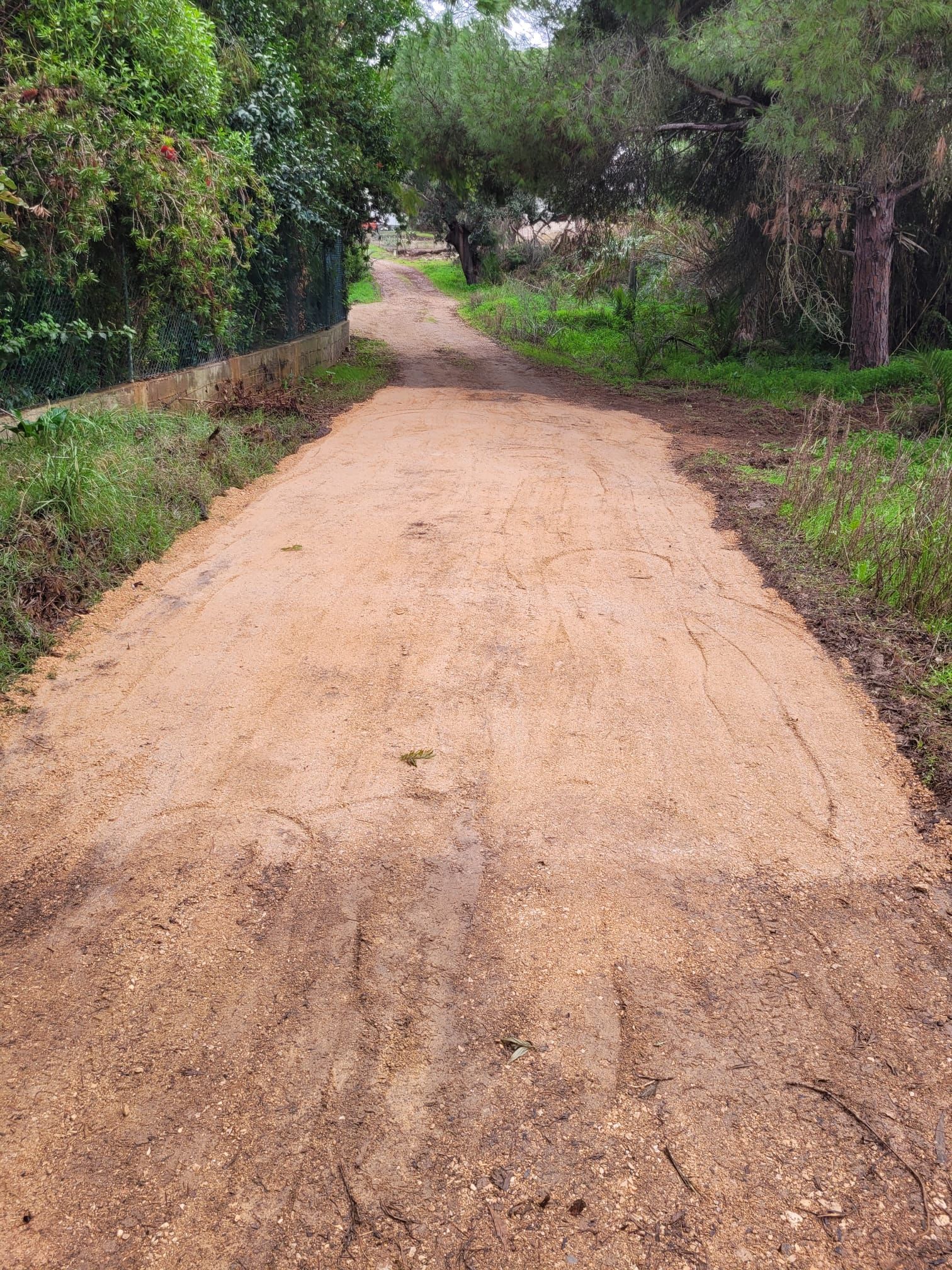 Os caminhos próximos à urbanização, que se encontravam bastante degradados, estão praticamente recuperados. O material foi adquirido e a equipa de funcionários da Junta executou os trabalhos no terreno.