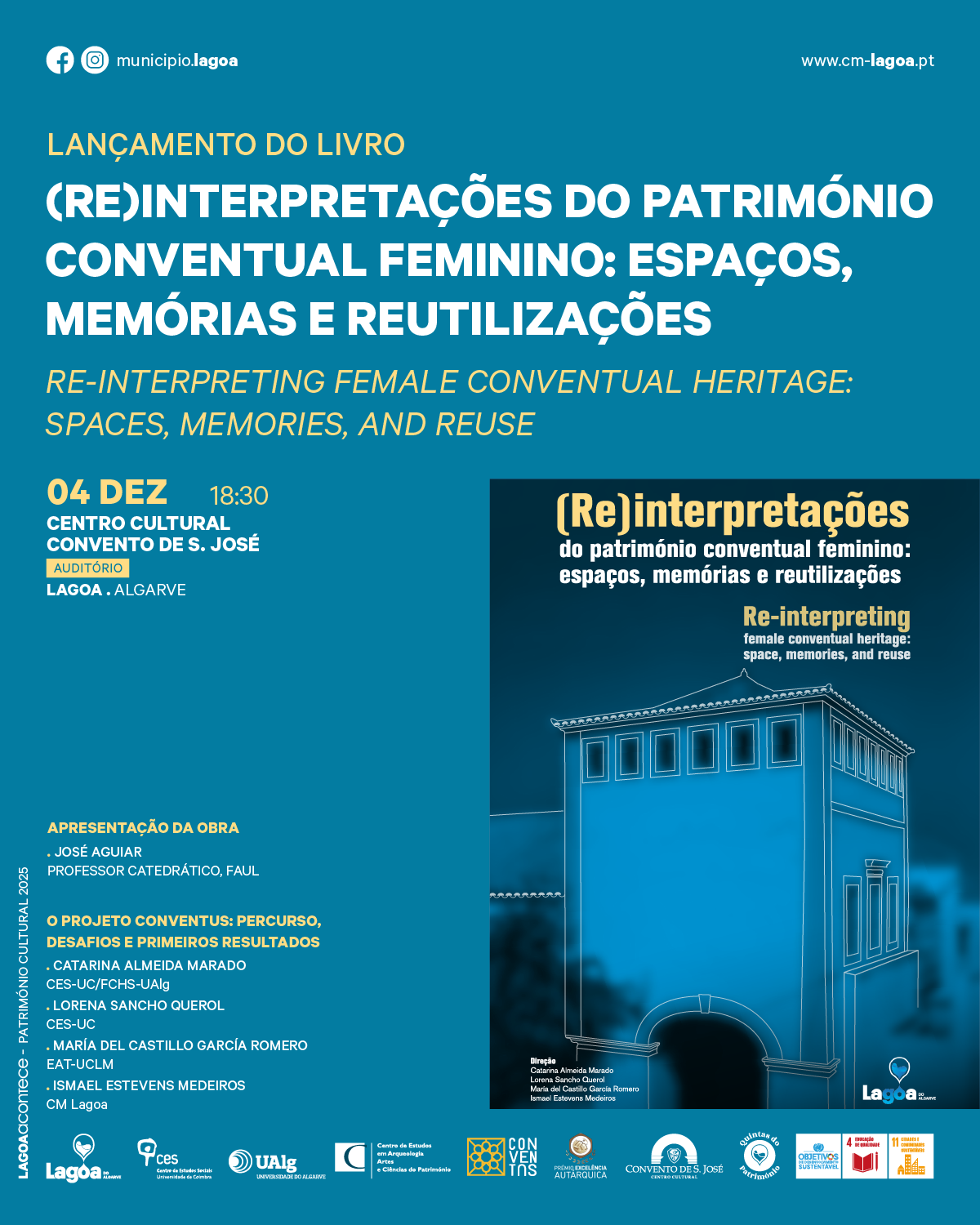 No próximo dia 4 de dezembro de 2025, pelas 18h00, será apresentado, no Centro Cultural Convento de São José, o livro "(Re)interpretações do património conventual feminino: espaços, memórias e reutilizações". Editada pelo Município de Lagoa, esta publicação reúne 10 artigos de investigação que exploram as múltiplas dimensões da arquitetura e do património conventual feminino: memórias, processos de (re)utilização e desafios contemporâneos de valorização cultural.