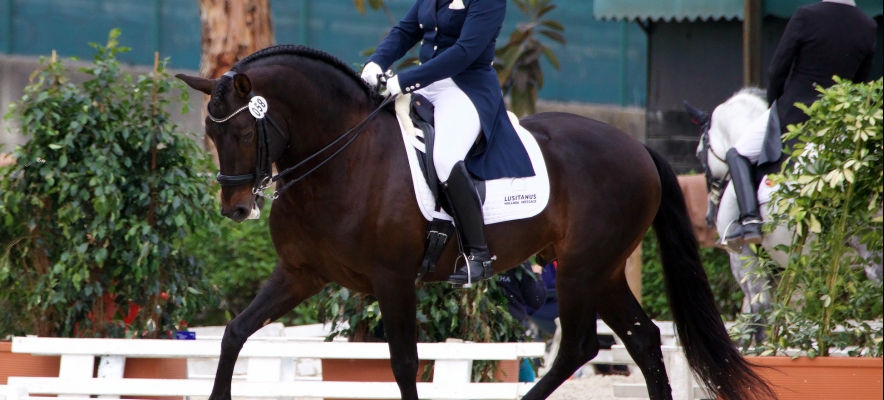 E foi no fim de semana 25, 26 e 27 de Outubro, na Sociedade Hípica Portuguesa que decorreu os Campeonatos de Dressage Open (CPDO) 2019, organizados pela Dressage First, que esta brilhante cavaleira e grande profissional da equitação disputou o pódio do nível Complementar, entrando em pista com o cavalo Garbo, um Puro-Sangue-Lusitano, ensinado desde sempre pela própria e pelo seu marido, também ele Cavaleiro profissional.