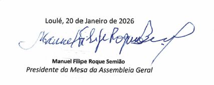 Convocam-se os Senhores Associados do LOULETANO DESPORTOS CLUBE para comparecerem em ASSEMBLEIA GERAL EXTRAORDINÁRIA, que se realizará no próximo dia 03 de fevereiro de 2026, terça-feira, às 20h, no Anfiteatro da Sede do Clube, na Rua Ventura S. Barbosa, em Loulé.