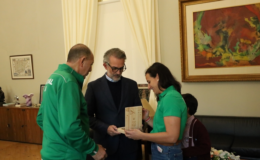 Na receção, marcada pela simplicidade e genuinidade que caracterizam a Joana, foram trocados diplomas de reconhecimento e a atleta ofereceu ao Presidente António Pina um equipamento de Portugal, partilhando também a sua mais recente medalha. O seu treinador, Mestre Júlio, destacou ainda a determinação e ambição da atleta, admitindo que, perante os resultados alcançados, ainda é possível equacionar a participação numa próxima edição, mérito que resulta de uma entrega e espírito competitivo absolutamente singulares.