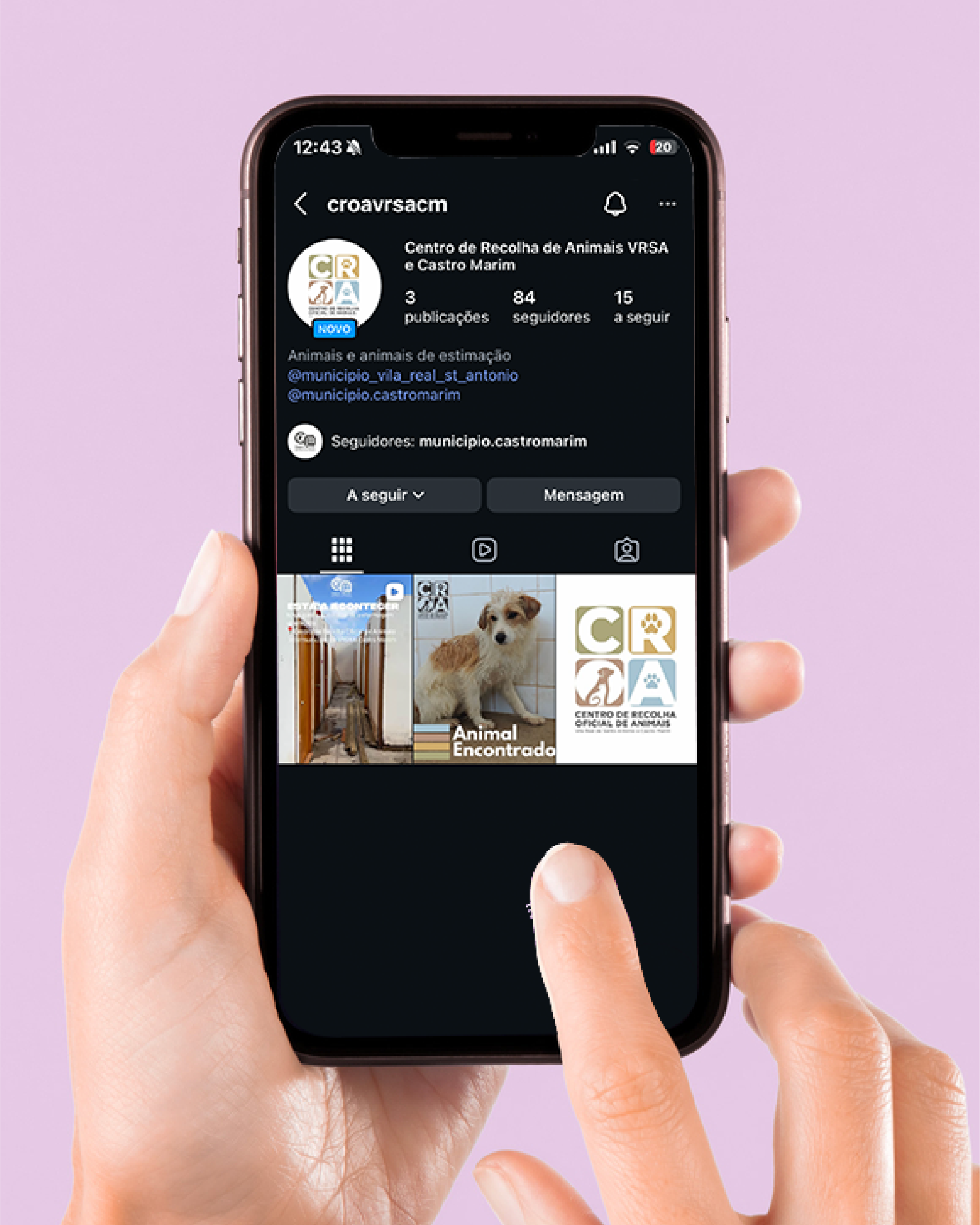 - Siga a nova página de Facebook: Centro de Recolha de Animais Intermunicipal de VRSA e Castro Marim: https://www.facebook.com/croavrsacm