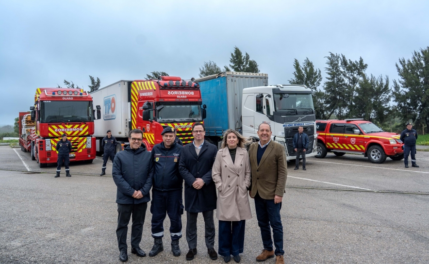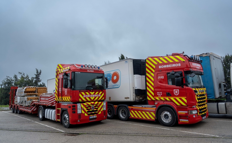 Na madrugada de hoje, partiram de Olhão quatro semi-reboques com destino a Leiria — três dos Bombeiros Municipais de Olhão e um disponibilizado por uma empresa privada do concelho. Nos veículos seguem telhas, paletes de pladur, areia, cimento, tijolos, blocos de cimento, brita, lonas e mangas plásticas, luvas e outros materiais fundamentais para os trabalhos de recuperação das zonas afetadas.