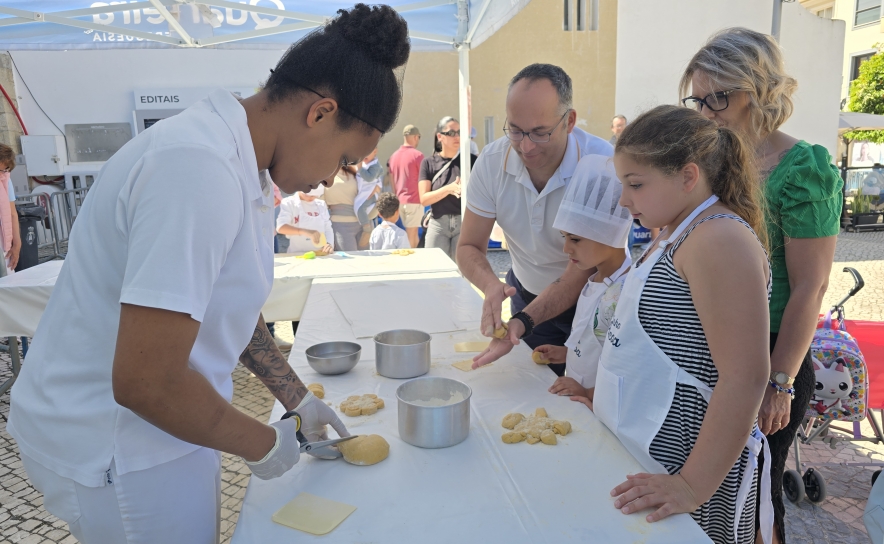 A Rua Vasco da Gama, em Quarteira, transformou-se no dia 3 de abril, numa autêntica oficina de sabores e afetos. Integrado no programa da 10.ª edição do Mercadinho da Páscoa, teve lugar o Atelier do Folar para os mais novos, com o patrocínio da Pastelaria Duo Doce. Durante a tarde, dezenas de crianças colocaram as mãos na massa — literalmente — e aprenderam, sob o olhar atento e orgulhoso dos pais, os segredos de uma das tradições mais doces da quadra pascal. A iniciativa, que contou com a participação entusiástica de famílias inteiras, proporcionou momentos únicos de convívio e aprendizagem. Enquanto os mais pequenos amassavam, modelavam e decoravam os seus folares, os pais acompanhavam de perto, ajudando, fotografando e, no final, levando para casa as obras-primas confecionadas pelos próprios filhos. Mais do que uma simples atividade lúdica, o atelier revelou-se um espaço de partilha entre gerações, onde o saber tradicional se transmitiu naturalmente, docemente, entre risos e farinha espalhada pela mesa.