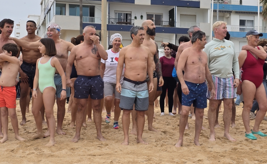A concentração na Praça do Mar foi apenas o ponto de partida para um momento que transcende o mergulho no mar, transformando-se numa celebração massiva da vida e do espírito coletivo. A iniciativa, que cresce em adesão e significado a cada edição, voltou a juntar centenas de banhistas destemidos, entre os quais o presidente da Câmara Municipal de Loulé, Telmo Pinto, e o presidente da Junta de Freguesia de Quarteira, João Romão, rodeados por uma impressionante moldura humana de milhares de pessoas que se estendeu ao longo de toda a Marginal.
