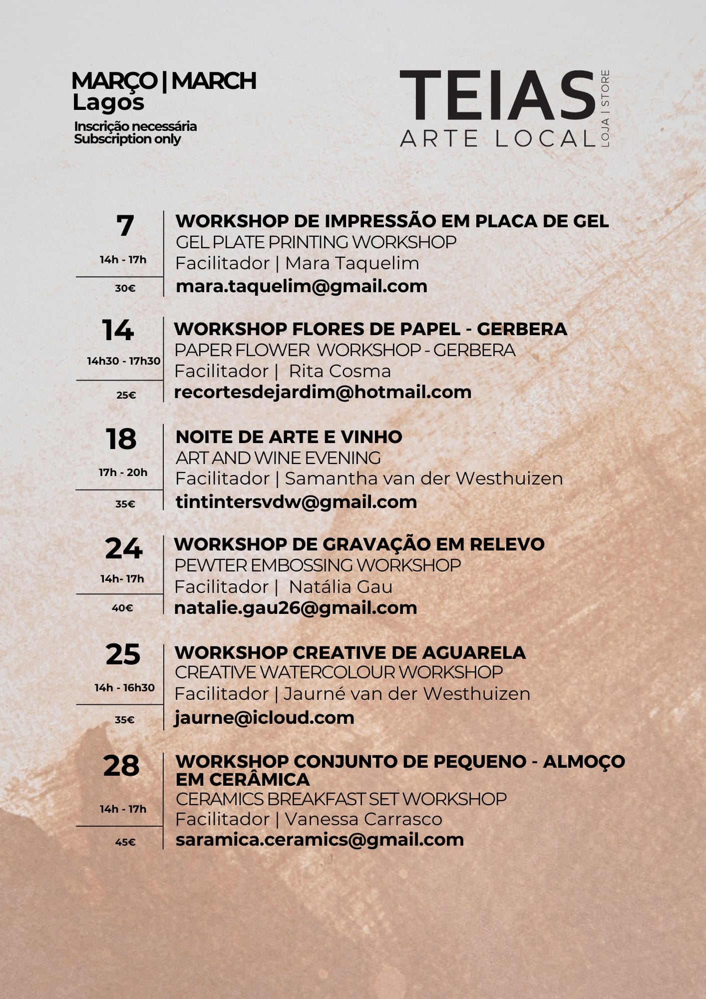 Março está cheio de criatividade, com workshops inspiradores e uma exposição muito especial.