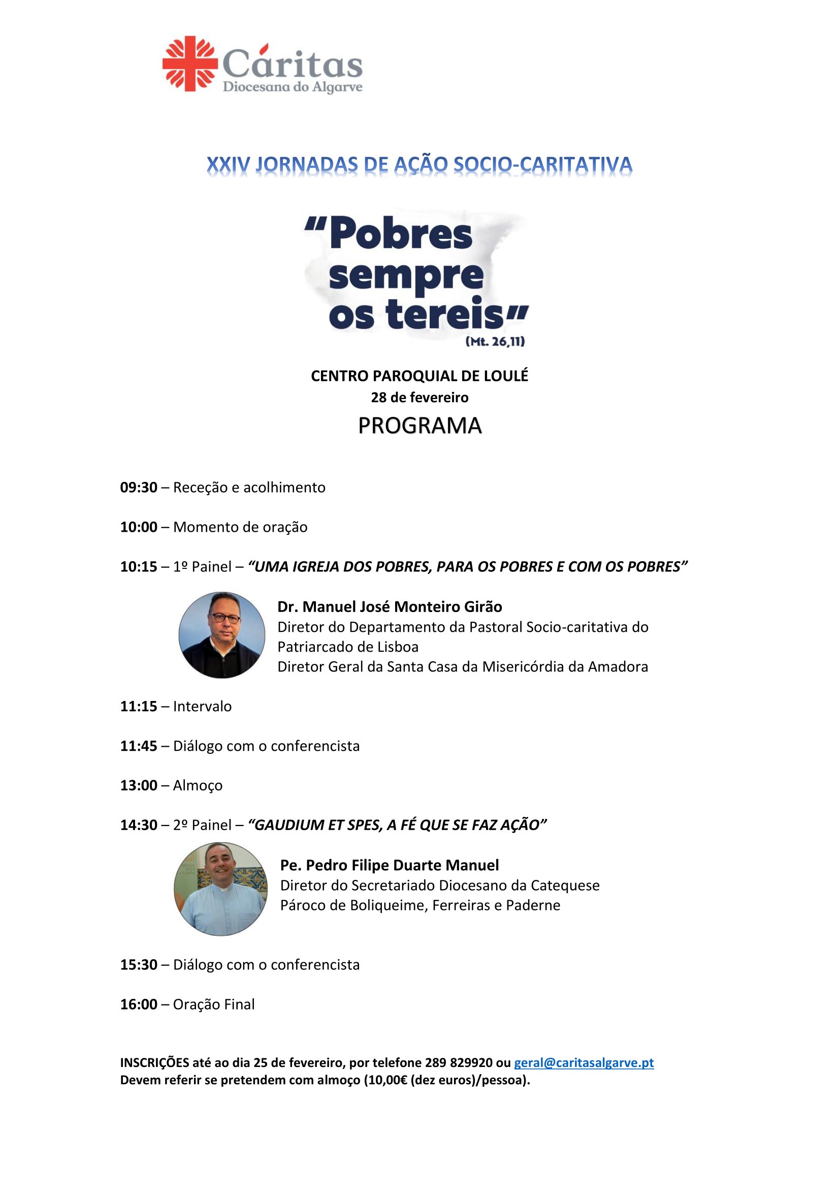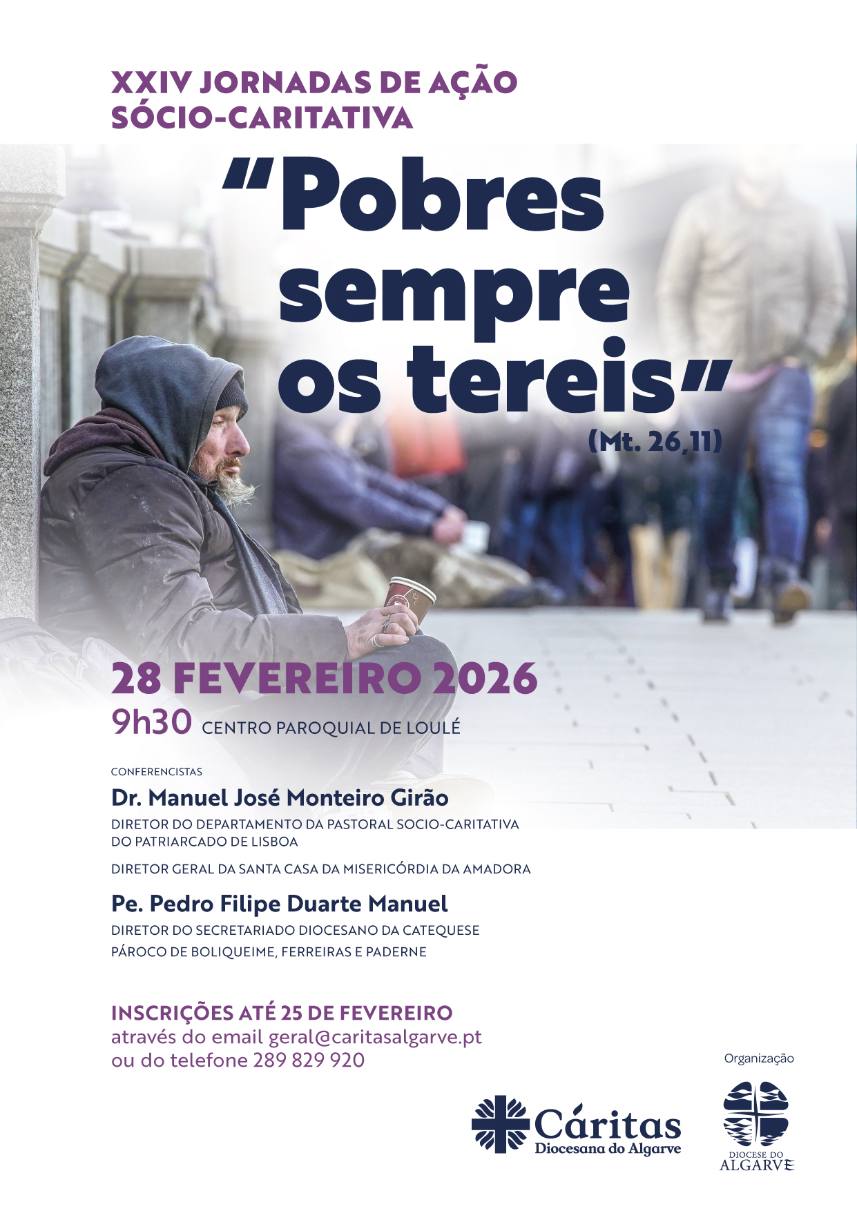 A Cáritas Diocesana irá realizar no próximo dia 28 de fevereiro no Centro Paroquial de Loulé, as XXIV Jornadas de Ação Sócio caritativa versando a temática: “Pobres sempre os tereis” (Mt. 26,11).
