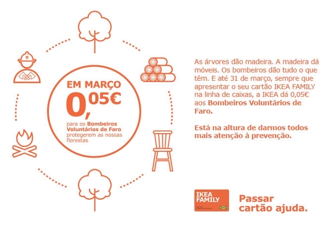 “Passar cartão já ajuda” é a nova campanha da IKEA Portugal para apoiar corporações de bombeiros locais na preparação para o combate aos incêndios e proteção da floresta. Neste âmbito, durante o mês de março, sempre que um cliente passar o seu cartão IKEA FAMILY na linha de caixas de uma loja, a IKEA doa 5 cêntimos a uma corporação de bombeiros local.