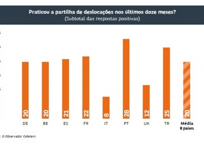 De entre os europeus, os portugueses são os mais adeptos da partilha de deslocações, que se tem afirmado cada vez mais como alternativa de mobilidade. 28% dos portugueses partilharam deslocações no último ano, um valor significativamente acima da média europeia (20%). Estes dados fazem parte de um estudo do Observador Cetelem sobre o futuro do mercado automóvel e são agora revelados no âmbito das iniciativas do Dia Europeu sem Carros, que se assinala a 22 de setembro.