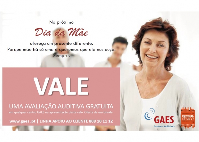 Para que as mães não parem nunca de ouvir todas as histórias dos filhos, a GAES – Centros Auditivos, líder ibérica em soluções auditivas, lança uma campanha de comemoração para o Dia da Mãe e oferece um vale correspondente a uma avaliação auditiva gratuita. Basta imprimir o vale e apresentá-lo num centro GAES da sua zona de residência.