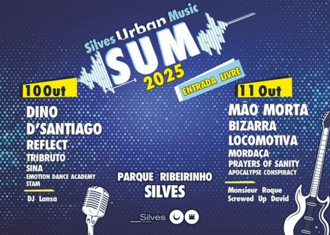 SUM - Silves Urban Music regressa já em outubro e traz grandes talentos da música urbana ao Parque Ribeirinho de Silves.