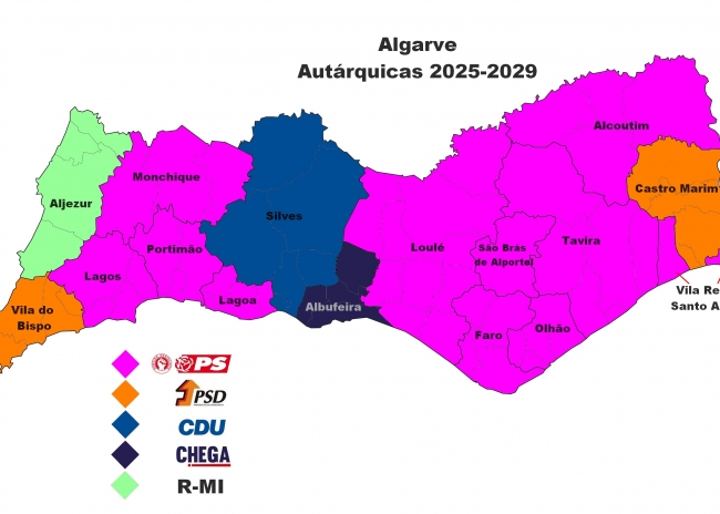 O PS mantém ainda as câmaras de Portimão, agora presidida por Álvaro Bila, e de Alcoutim, com Paulo Paulino — ambos novos autarcas que substituíram, durante o mandato 2021/2025, os presidentes então eleitos.