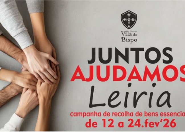 O município de Vila do Bispo está a promover, até ao próximo dia 24 de fevereiro, a campanha de recolha de bens alimentares e produtos de higiene «JUNTOS AJUDAMOS» com o objetivo de apoiar a população do concelho de Leiria.