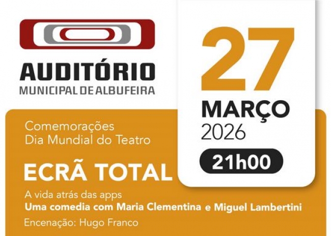 No dia 27 de março, às 21h00, sobe ao palco a peça “Ecrã Total, uma comédia sarcástica e surpreendente sobre as nossas vidas Hiper conectadas, a ditadura do digital e as relações humanas em modo multitasking.