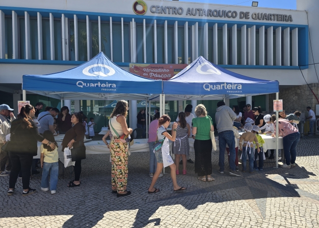 A 10.ª edição do Mercadinho da Páscoa abriu no dia 1 de abril e prolongou-se até ao dia 4 de abril, oferecendo a moradores e visitantes um programa repleto de animação. Para além da venda de produtos artesanais e doçaria regional, o evento contou com insufláveis, uma Oficina de Manualidades e a já tradicional Oficina do Folar, que ontem encheu de alegria os mais novos e os seus familiares. Hoje, sábado, o ponto alto do mercadinho foi o animado Baile da Pinha e Folar Gigante, que juntaram miúdos e graúdos num ambiente festivo. A animação infantil, pensada ao pormenor para envolver as crianças e proporcionar momentos de lazer em família, foi um dos grandes destaques desta edição, comprovando que a Páscoa em Quarteira se vive dentro e fora de casa, sempre com os mais pequenos como protagonistas. O Mercadinho da Páscoa contou com venda de produtos regionais algarvios e artesanato, num ambiente perfeito para passear com as crianças e descobrir o melhor que a região tem para oferecer. O evento é organizado pela Junta de Freguesia de Quarteira, com o apoio da Câmara Municipal de Loulé, e afirma-se, ano após ano, como um dos momentos mais aguardados da quadra pascal no concelho, unindo tradição, gastronomia e espírito comunitário.
