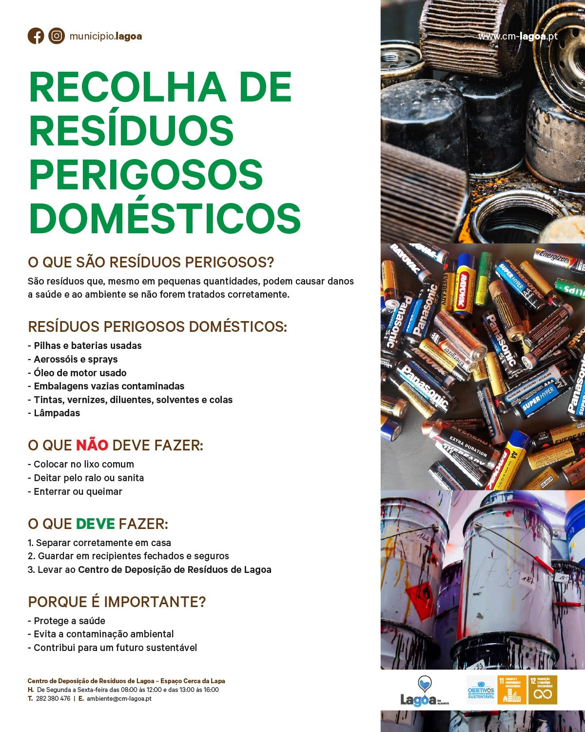 Dessa forma e dando cumprimento a esse RGGR, a Câmara Municipal de Lagoa passou a disponibilizar, desde o dia 01 de agosto, no Centro de Deposição de Resíduos de Lagoa – Espaço Cerca da Lapa, a deposição gratuita dos resíduos perigosos domésticos.