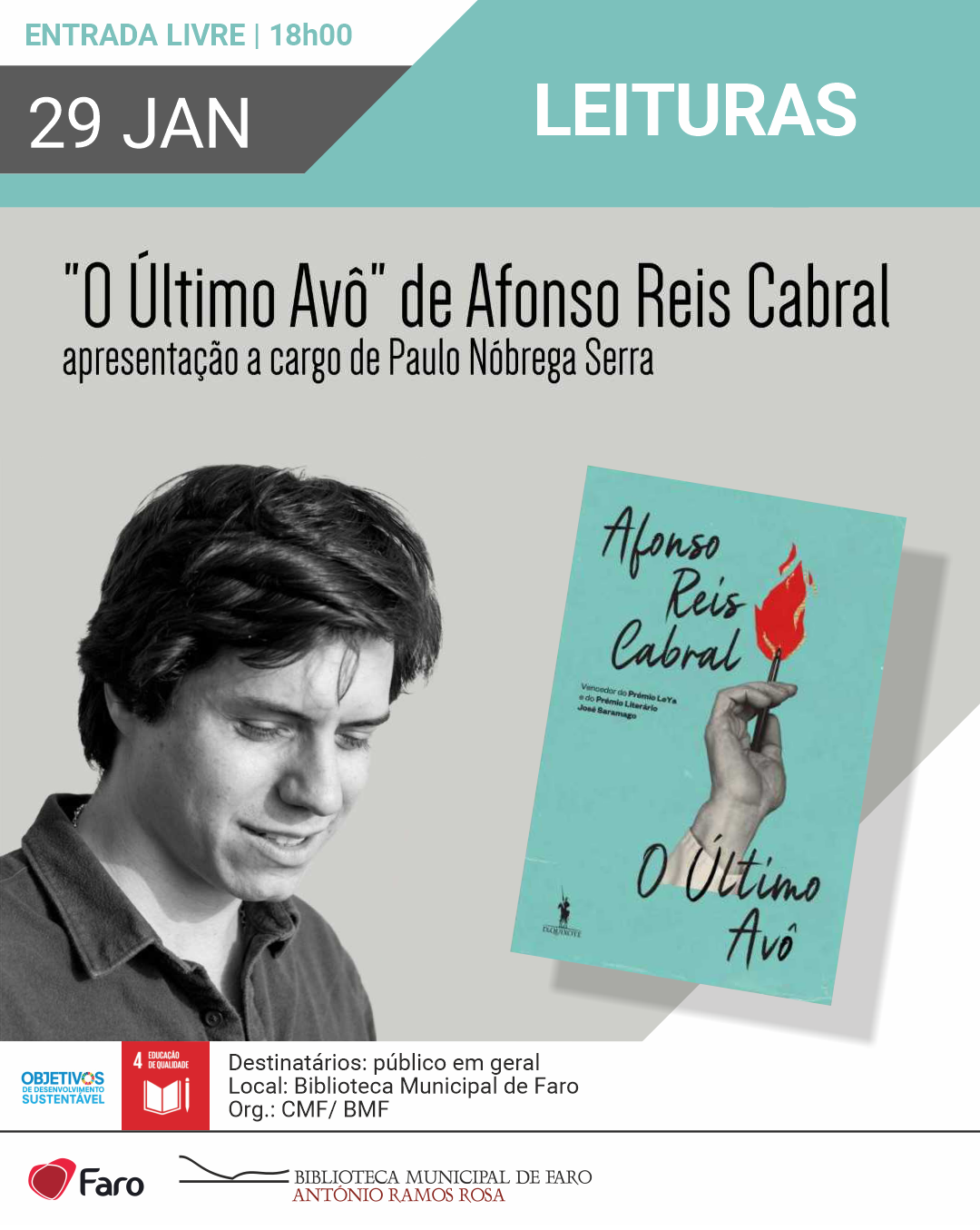 O encontro tem entrada livre e irá proporcionar uma conversa aberta com o autor sobre o processo criativo, os temas centrais da obra e o lugar de O Último Avô no seu percurso literário.
