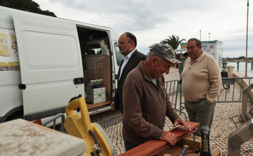 Na zona ribeirinha, foram acompanhadas duas intervenções em fase avançada: a empreitada de controlo de acessos à área reservada aos profissionais de pesca, junto aos armazéns de apetrechos, atualmente em fase final de execução, e os trabalhos de substituição das madeiras dos passadiços de embarque, contribuindo para a requalificação de infraestruturas essenciais ao quotidiano da comunidade piscatória e turística