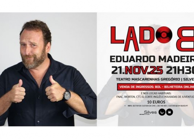 O próximo Lado B recebe o espetáculo do humorista Eduardo Madeira, no dia 21 de novembro, às 21h30, no Teatro Mascarenhas Gregório em Silves.