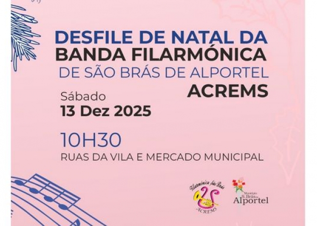 A Banda Filarmónica de São Brás de Alportel volta a trazer o espírito natalício às ruas da vila com o seu tradicional Desfile de Natal anual, que se realiza no sábado, 13 de dezembro, às 10h30.