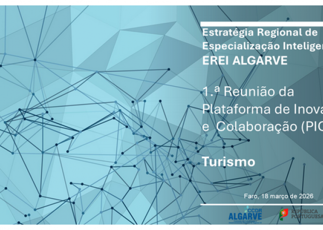 A Comissão de Coordenação e Desenvolvimento Regional do Algarve, I.P. (CCDR Algarve), promove, no próximo dia 18 de março, entre as 14h30 e as 18h00, no Auditório David Assoreira, em Faro, a 1.ª reunião da Plataforma de Inovação e Colaboração (PIC) dedicada ao Turismo.