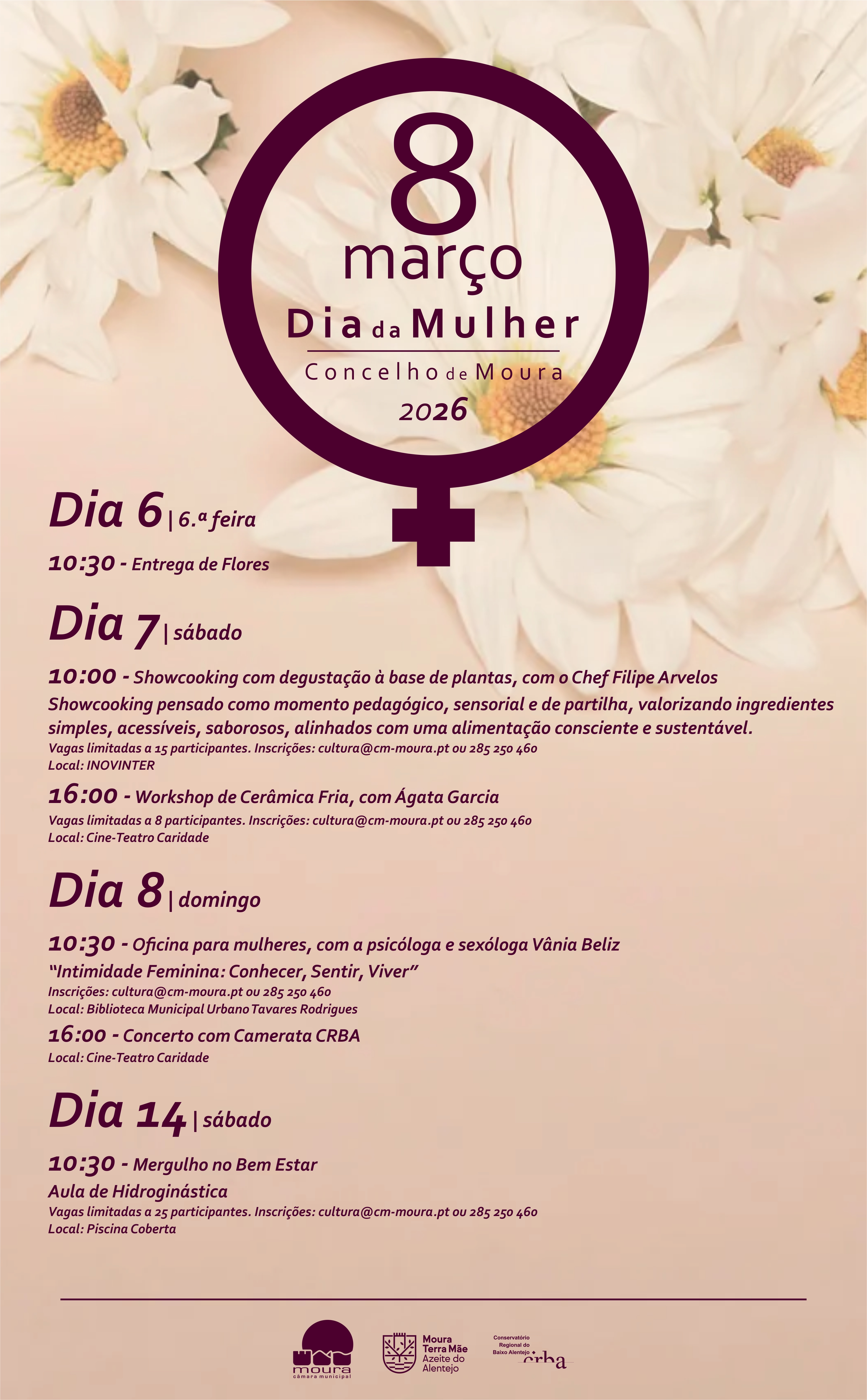 A Câmara Municipal de Moura vai assinalar a data com iniciativas que se realizam entre os dias 6 e 14 de março.