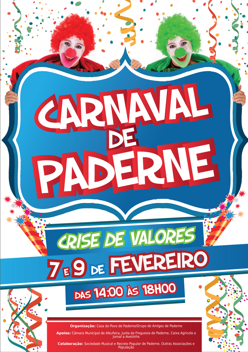 A aldeia histórica de Paderne prepara-se para receber um dos Carnavais mais tradicionais do Algarve. Este ano a Organização (Casa do Povo e Grupo de Amigos de Paderne) elegeu como tema das celebrações a “Crise de Valores”, prometendo arrancar boas gargalhadas à conta da atual situação socioeconómica do País.