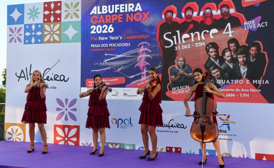 O Albufeira Carpe Nox 2026 continua no dia 1 de janeiro, a partir das 17h00, na Praia dos Pescadores, com o Concerto de Ano Novo com os Quatro e Meia, com energia contagiante e um alinhamento exclusivo que irá tornar o primeiro dia do ano, num momento absolutamente emocionante e inesquecível.