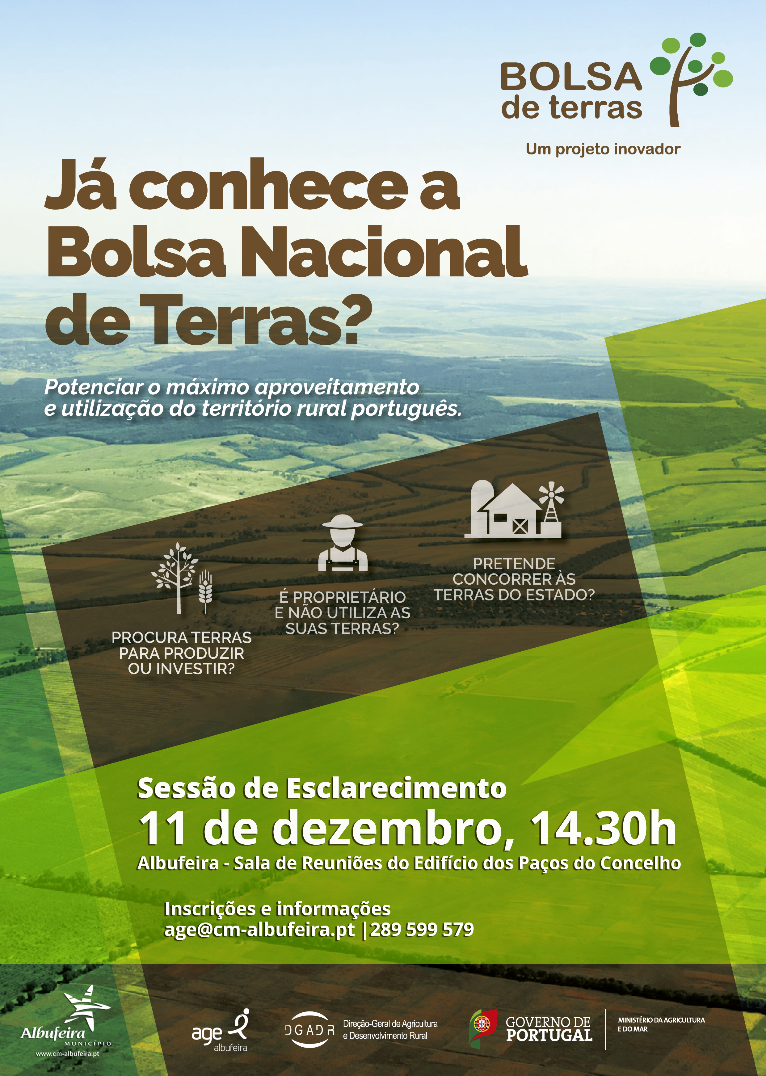 O Município de Albufeira vai ser palco de uma sessão de esclarecimentos sobre a Bolsa de Terras, com o intuito de elucidar a população do concelho acerca da disponibilização, promoção, arrendamento e procura de terras para fins produtivos.