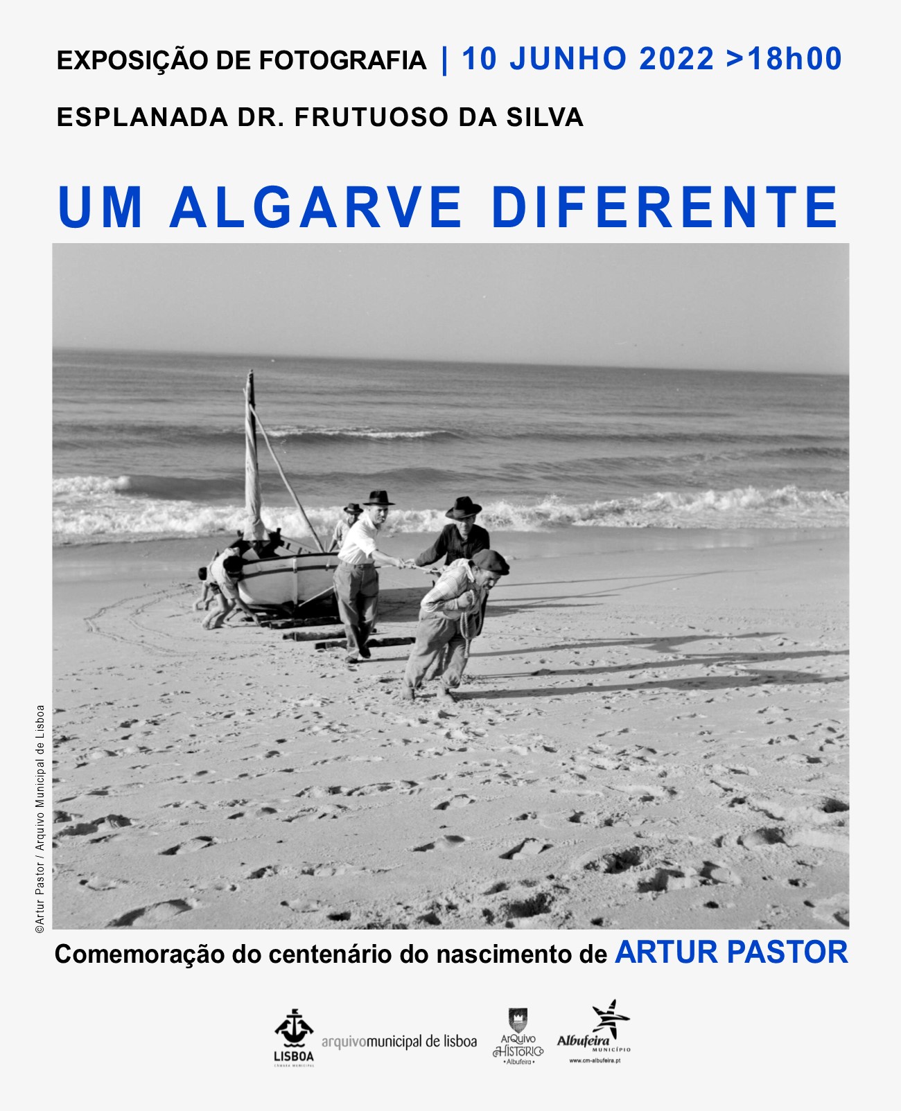 A mostra vai decorrer já no próximo dia 10 de Junho, sexta-feira, às 18h00, na Esplanada Dr. Frutuoso da Silva. A inauguração insere-se nas comemorações do centenário do fotógrafo Artur Pastor e surge na sequência da colaboração entre os Municípios de Albufeira e Lisboa, com um total de 60 fotografias a preto e branco da autoria do fotógrafo. A exposição estará patente ao público até ao dia 10 de junho de 2023.