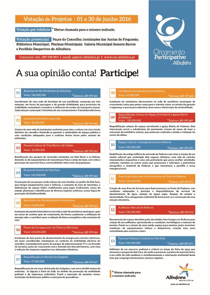 Este ano são treze os projetos que se encontram a votação no âmbito do Orçamento Participativo (OP) do Município de Albufeira para o ano de 2017.