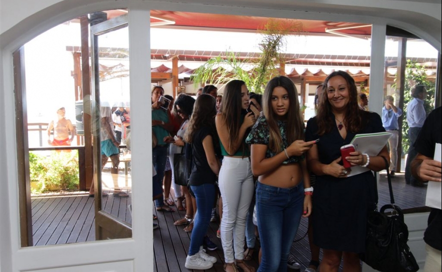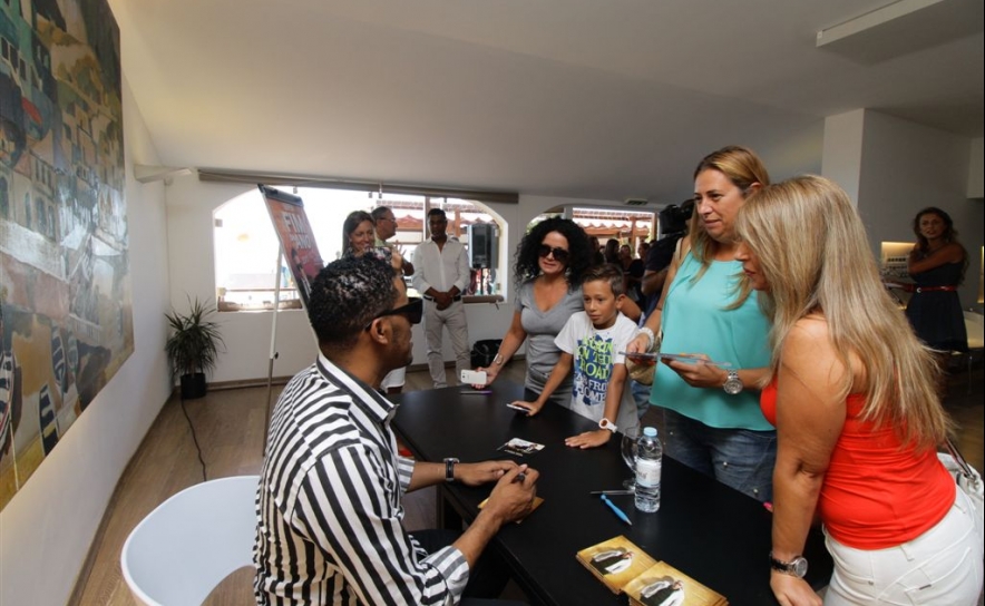 Anselmo Ralph chegou à esplanada do Clube Borda D´Água acompanhado do presidente da Câmara Municipal de Albufeira e do presidente da Agência de Promoção de Albufeira (APAL), com um largo sorriso no rosto e os braços abertos para todos os que o abordavam no curto percurso até ao palco improvisado para a dar as boas vindas aos convidados do “Meet & Greet” Anselmo Ralph.
