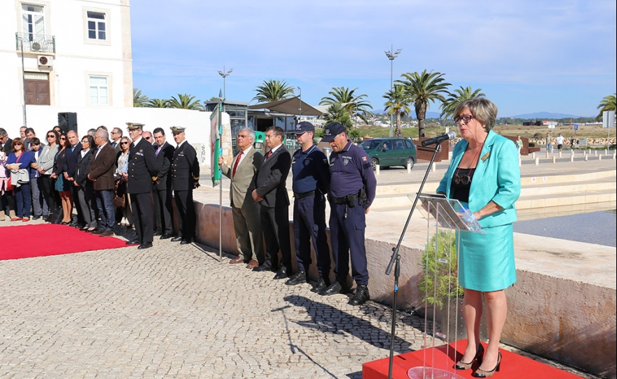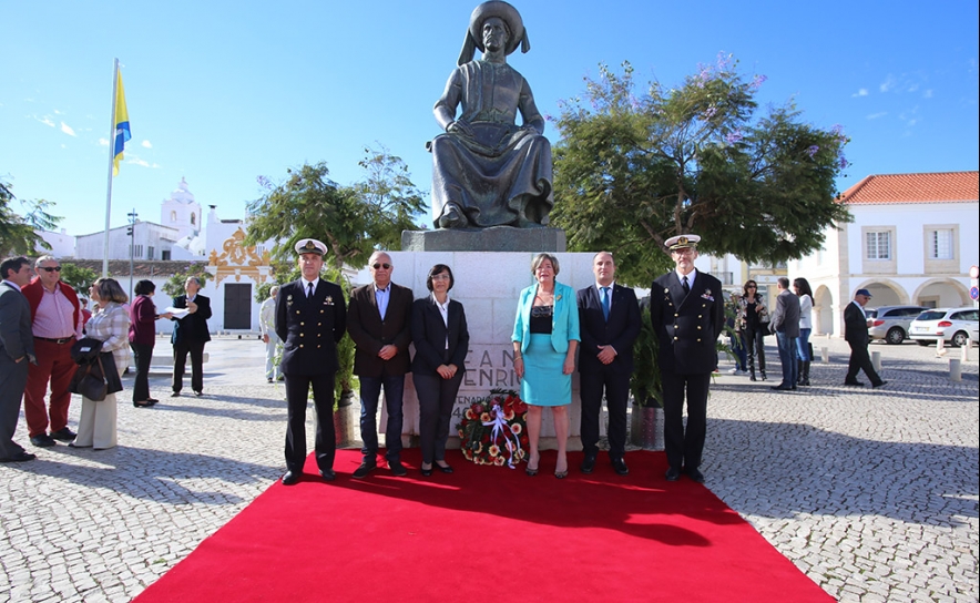 Depois de prestada a homenagem à Memória do Infante e aos 556 anos sobre a sua morte, com a deposição de uma coroa de flores, e das alocuções em representação da Marinha e dos municípios de Aljezur e Vila do Bispo, tomou a palavra a Presidente do Conselho Diretivo da Associação de Municípios Terras do Infante, Maria Joaquina Matos, que iniciou o seu discurso falando das variadas iniciativas que este ano os 3 municípios organizaram em torno do seu patrono, o Infante. “De Lagos partiram durante décadas os marinheiros navegadores ao seu serviço e o mar fez-se novo e descobriu-se o mar sem fim que é Português. Aqui se iniciou, pois, um novo tempo da História de Portugal, o tempo dos Descobrimentos Marítimos Portugueses, importantíssimo contributo para a união da Terra, para a descoberta do Mundo Global”. A este propósito a autarca ainda frisou que “somos, de facto, Território de Globalização e, por isso, aqui reafirmo o nosso apoio à candidatura à UNESCO, que temos de levar para a frente, procurando o reconhecimento do nosso papel para a história nacional e do mundo”.