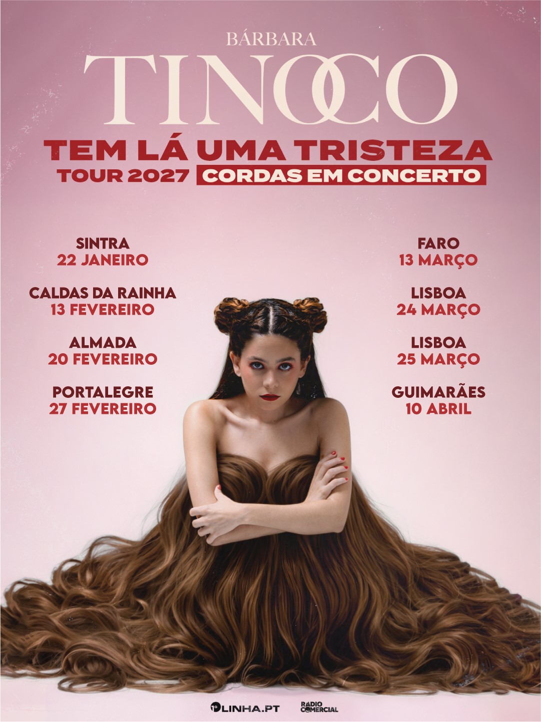 A artista anuncia agora a digressão “Tem Lá Uma Tristeza” — Cordas em Concerto, com estreia marcada para 2027. Uma nova proposta estética e sonora, apresentada pela primeira vez em formato de teatro e acompanhada por um sexteto de cordas, composto por dois violinos, duas violas, um violoncelo e um contrabaixo.