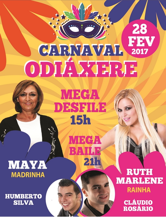 Na 23.ª edição do Carnaval de Odiáxere, a folia está garantida na Terça-feira de carnaval com o desfile de Carros alegóricos, músicos, bailarinas, Fanfarras, batucada, alegria, cor, fantasia, muito ritmo e com a presença das sempre animadas apresentadora de televisão e Taróloga Eunice MAYA e a cantora RUTH MARLENE.