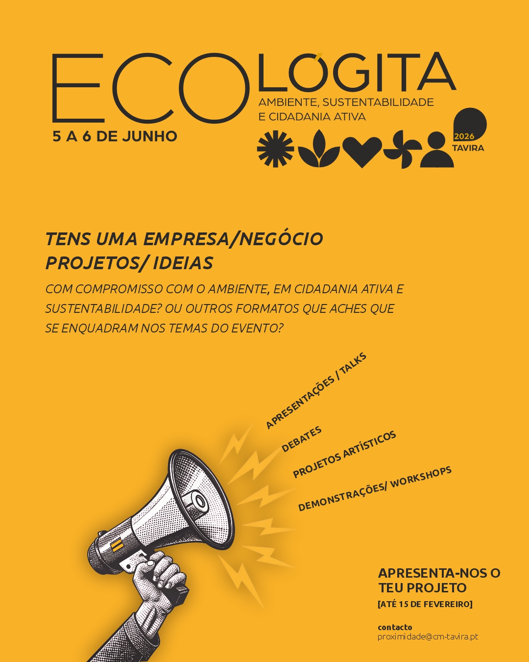Com esta medida, a autarquia pretende alargar o processo de planeamento à comunidade, convidando cidadãos, projetos locais, empresas, artistas, associações e movimentos a contribuírem com ideias e sugestões que reforcem o espírito colaborativo e participativo do evento. As propostas deverão estar alinhadas com os pilares temáticos do festival: cidadania ativa, sustentabilidade, ação e justiça climática e transição verde. Estas poderão incluir: