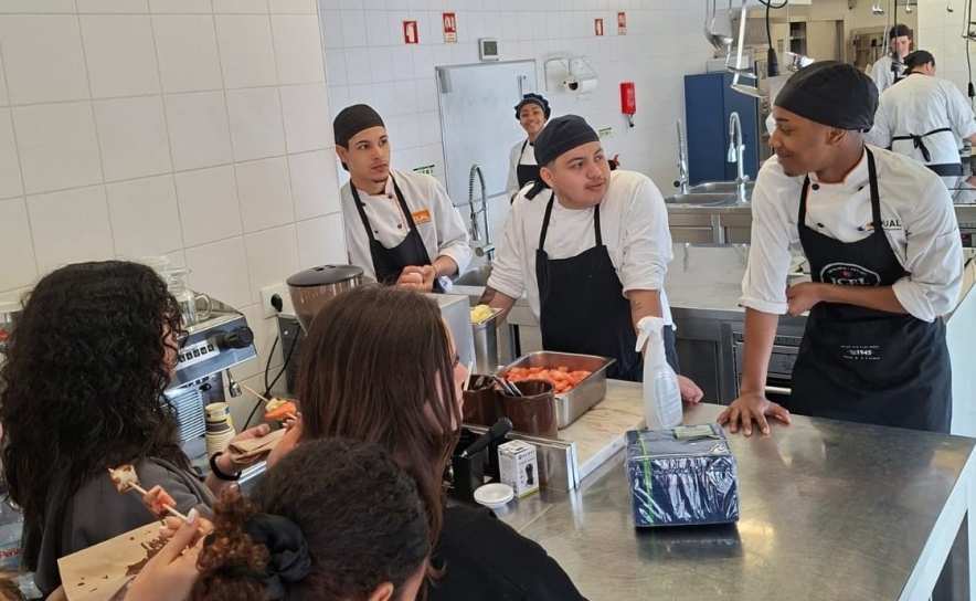 No dia 24 de março, a DUAL Portimão abriu as suas portas à comunidade, proporcionando um dia marcado pela proximidade, partilha e aprendizagem em contexto real. Alunos e professores das escolas da Bemposta e de Monchique visitaram as instalações, sendo recebidos pelos próprios formandos, que assumiram o papel de anfitriões e partilharam a sua experiência formativa. A presença de vários elementos do Instituto de Emprego e Formação Profissional foi também muito relevante e fundamental para toda a equipa da DUAL. Durante o período diurno, os visitantes tiveram a oportunidade de assistir a aulas práticas e teóricas, com especial destaque para a área da Cozinha.