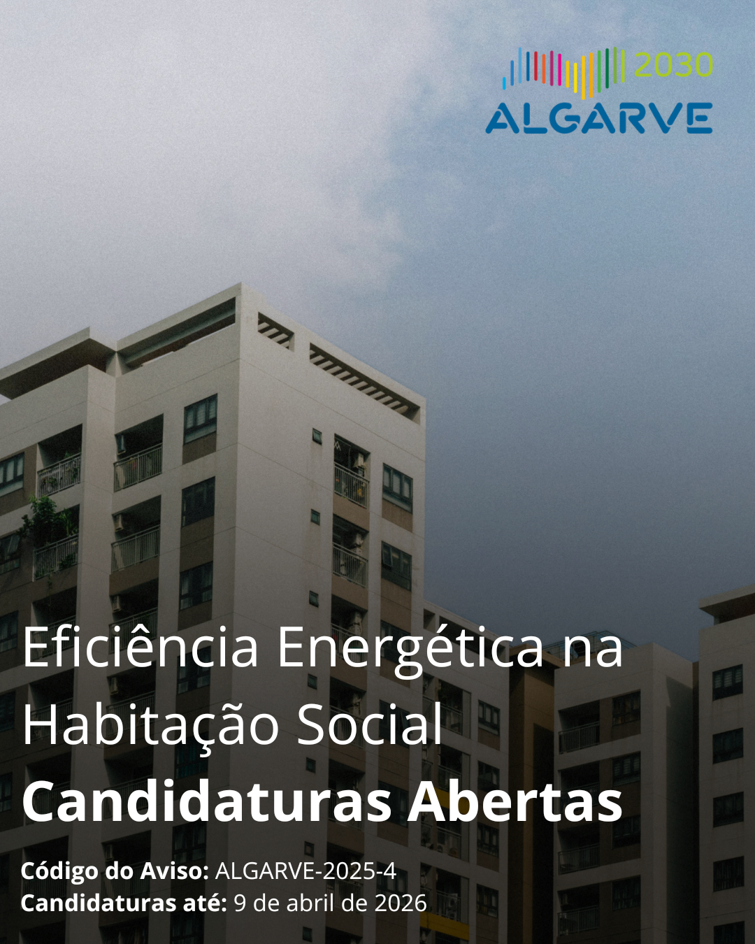O aviso mantém-se aberto até 09 de abril e o Programa Regional Algarve 2030 reforça o apelo para que mais entidades submetam as suas candidaturas, aproveitando as oportunidades de financiamento disponíveis para melhorar a eficiência energética e reduzir as emissões de gases com efeito de estufa na habitação social.