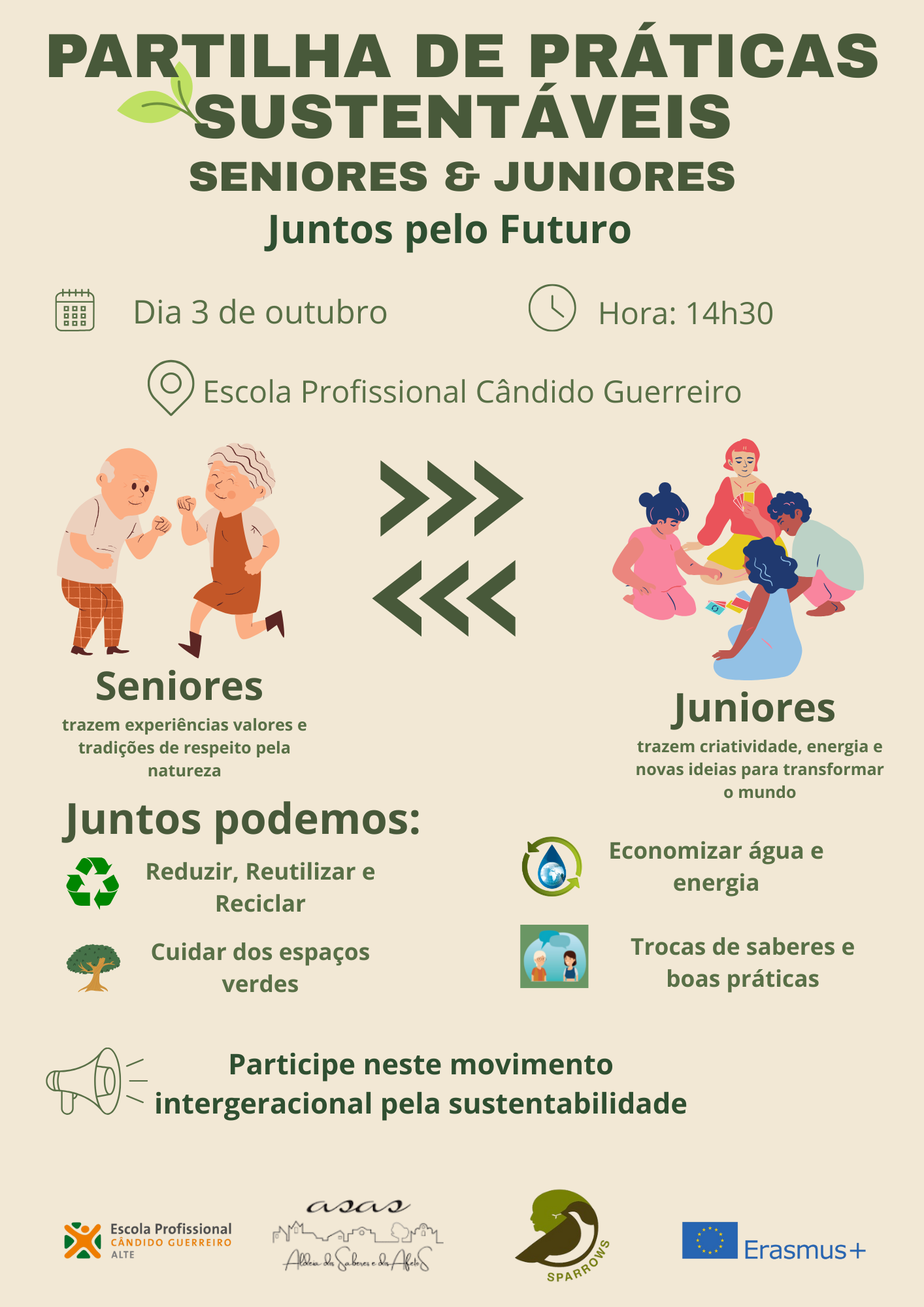 A atividade foi realizada no âmbito do projeto SPARROWS, Sharing Paths Among Rural Residents: Old-age Wisdom and Sustainability, trata-se de um projeto europeu financiado pelo Erasmus+ que tem como objetivo capacitar pessoas idosas em comunidades rurais como embaixadores de estilos de vida sustentáveis, utilizando percursos de aprendizagem inovadores e promovendo conexões intergeracionais.