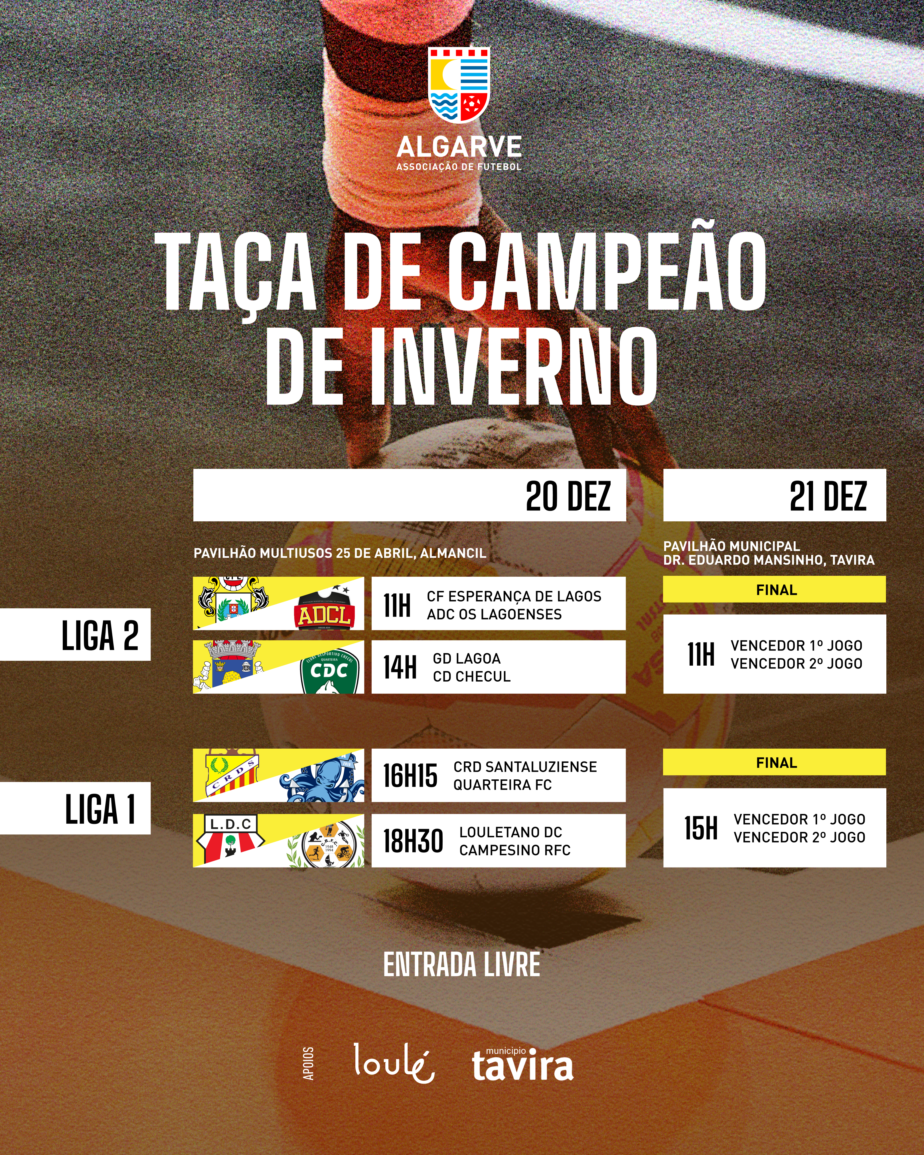 No domingo, dia 21, os vencedores da Liga 2 disputam a final, pelas 11h00, sendo que os finalistas da Liga 1 lutam pelo troféu, pelas 15h00, no Pavilhão Municipal Dr. Eduardo Mansinho, em Tavira.