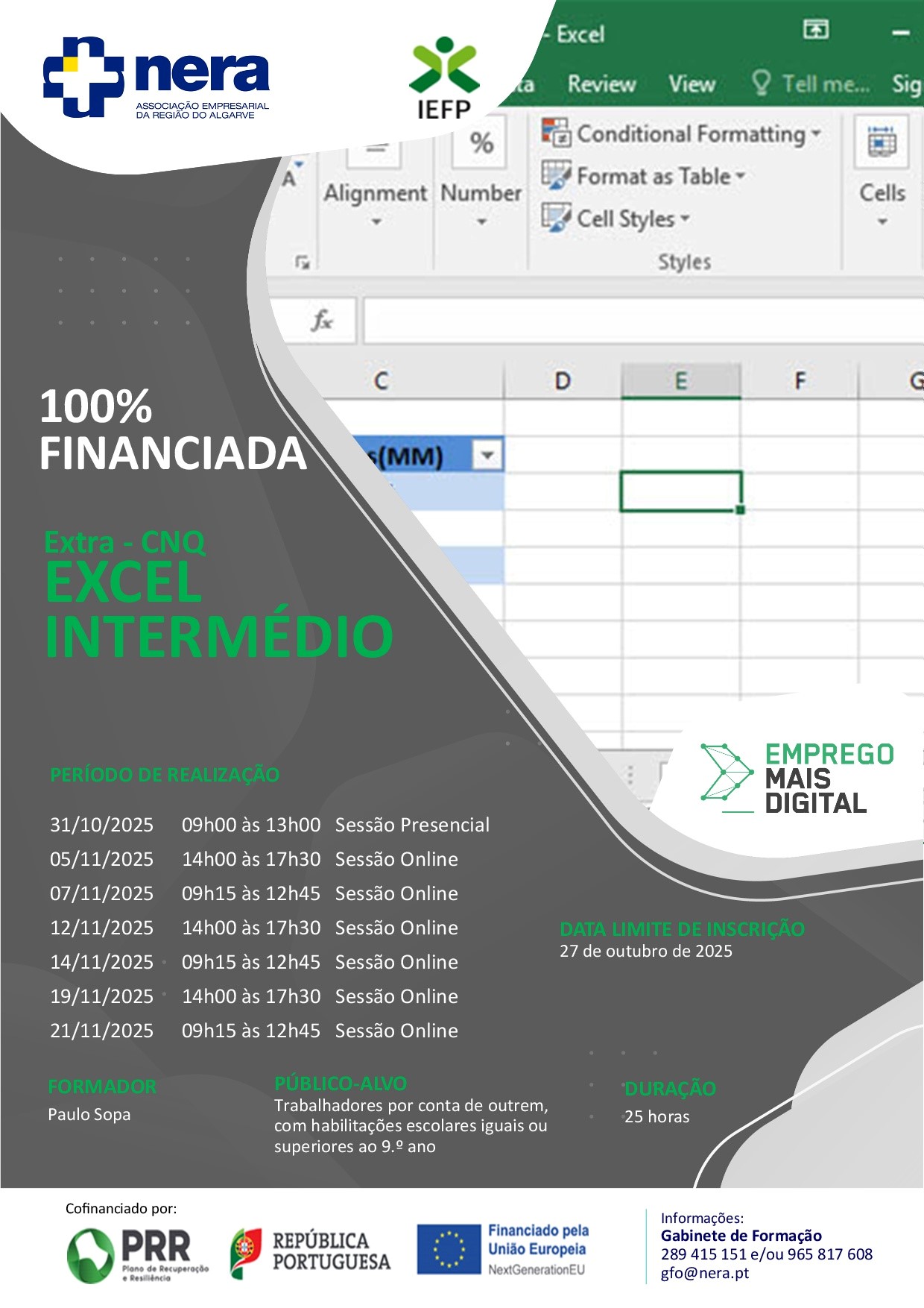 - Utilizar ferramentas intermédias de gestão e análise de dados em folhas de cálculo.