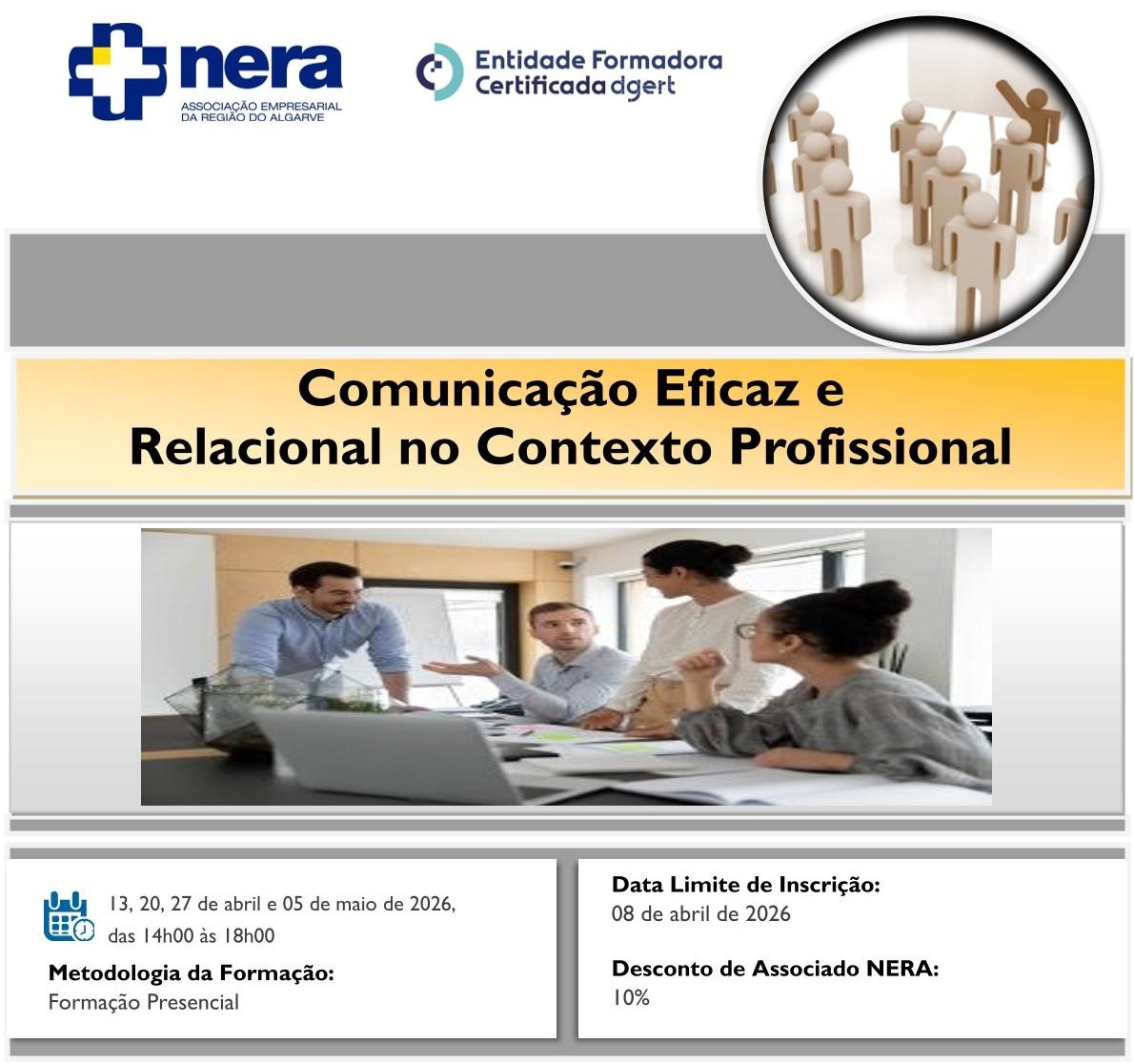 Os interessados nesta ação de formação deverão fazer chegar ao NERA a respetiva Inscrição até ao dia 08 de abril de 2026.