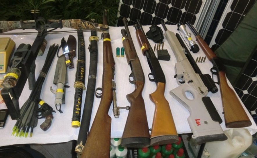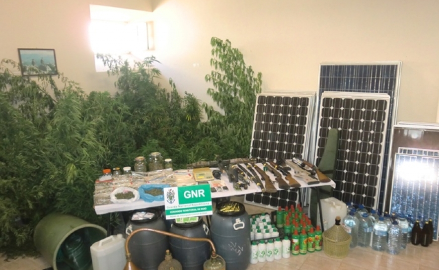 Para além do armamento apreendido, parte dele calibre de guerra, destacam-se as plantas de canábis, cultivadas no terreno envolvente à habitação, bem como os diversos produtos associados ao seu cultivo e acondicionamento, onde se incluem inúmeras embalagens de produto fertilizante.