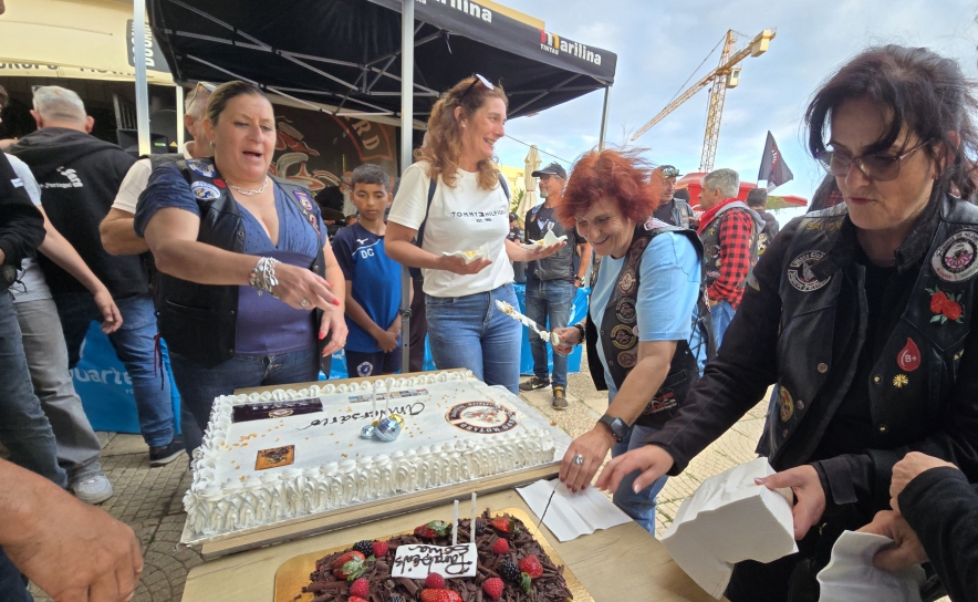 Logo a seguir, cantaram-se os parabéns e cortou-se o bolo de aniversário, não apenas do GMQ, mas também outro da aniversariante do dia, Sónia Dias, esposa do presidente do GMQ, Agostinho Moreira. A cumplicidade do casal, visível durante toda a festa, lembrou a todos que o motociclismo também se faz a pares, que as estradas são mais belas quando partilhadas e que o clube é, afinal, uma grande família alargada. Agostinho Moreira, visivelmente emocionado, agradeceu a presença de todos e fez questão de salientar o trabalho anónimo dos muitos voluntários que, ao longo de 27 anos, mantiveram vivo o espírito do GMQ. “Somos os primeiros a chegar e os últimos a sair, mas quando vemos esta casa cheia, esta alegria nos olhos de cada um, vale a pena todo o esforço” , afirmou o presidente, entre um brinde e outro.
